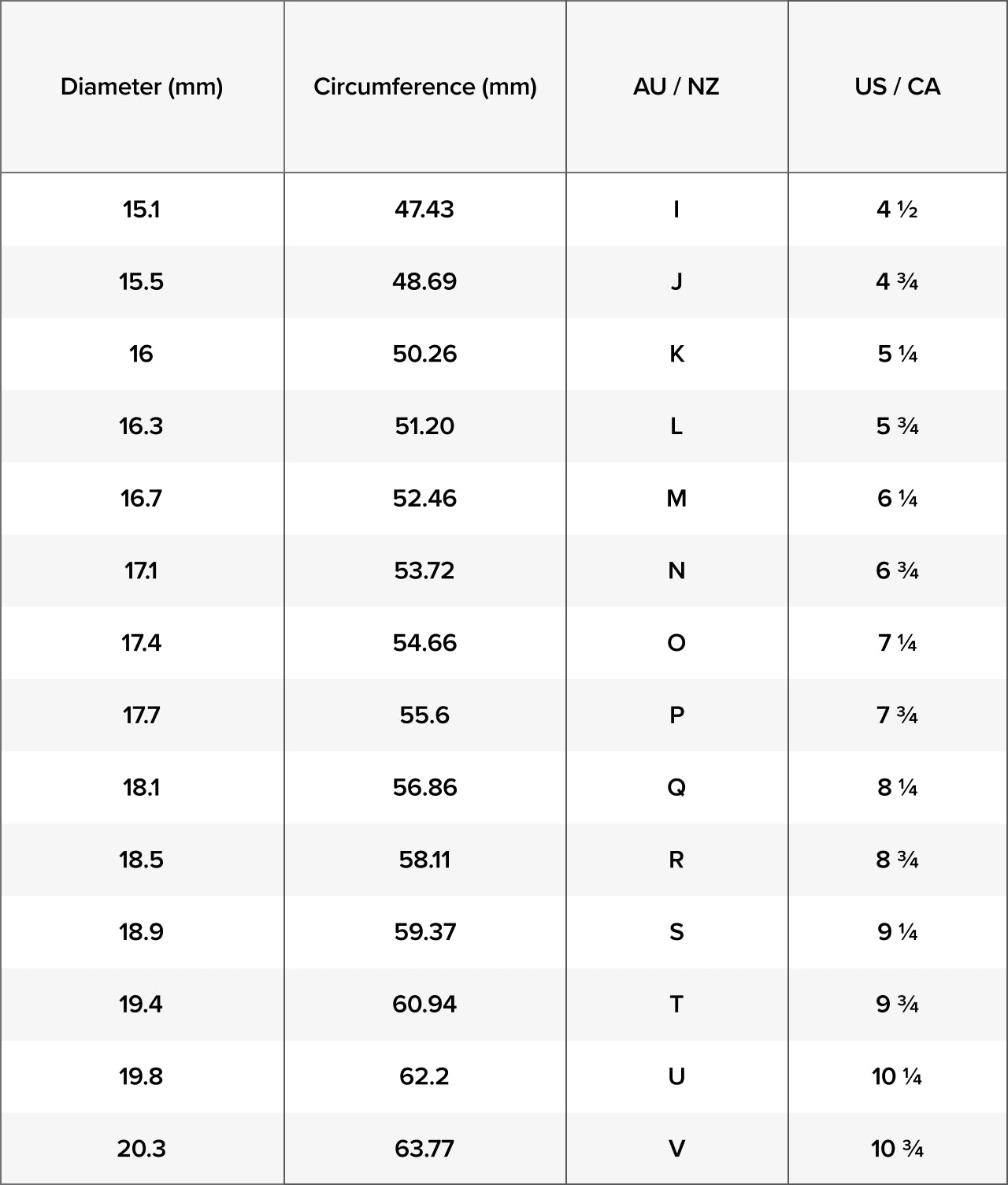 Ring Size Chart